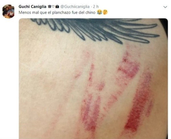 La botinera publicó una foto de la espalda maltrecha de Martínez Quartay escribió:“Menos mal que el planchazo fue del Chino”.
