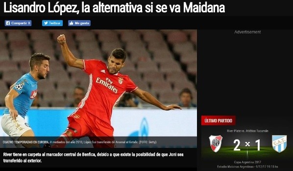 River y Boca podrían protagonizar una nueva batalla por un futbolista. En este caso, el protagonista es Lisandro López, interesante defensor central de 28 años de edad que actualmente defiende la camiseta del Benfica de Portugal. Cuenta con 1,87 metros de altura y un muy buen juego aéreo.