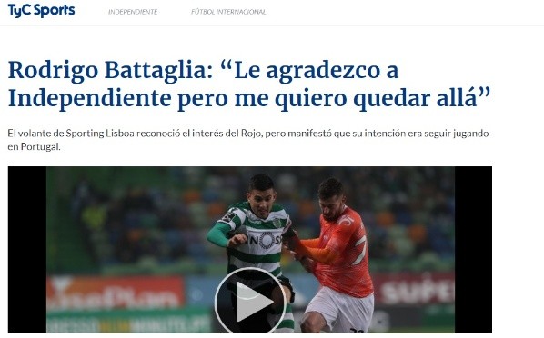 “Me llegó, es verdad, pero Sporting pidió una suma de dinero que me parece imposible. Le agradezco a Independiente pero me quiero quedar allá”, exteriorizó el propio futbolista sobre la situación.