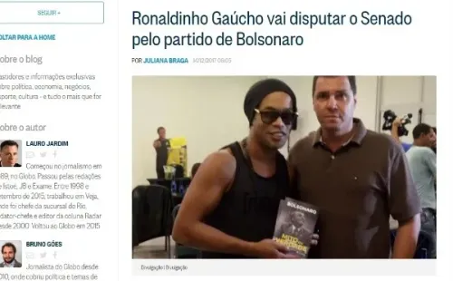 Ronaldinho Gaúcho sería candidato por el Partido Patriota, un movimiento de ultra derecha que postulará a la presidencia al diputado Jair Bolsonaro, polémico personaje que se desempeña como Capitán del Ejército, aunque en retiro.