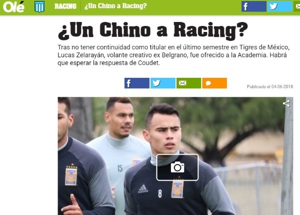 Más allá de las cifras de uan posible operación, la decisión final sobre una posible llegada de Zelarayán, de 25 años de edad, la tendrá Eduardo Coudet, director técnico de Racing, que todavía no se pronunció al respecto.