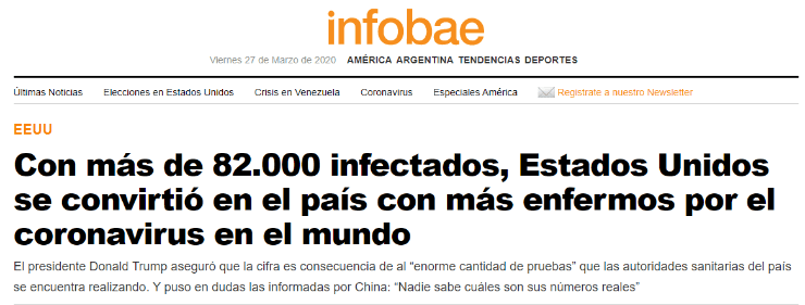 Superando la barrera de los 85mil infectados en las últimas horas, distintos portales informaron que el territorio de América del Norte mencionado previamente pasó a ser el más afectado por elCOVID-19.