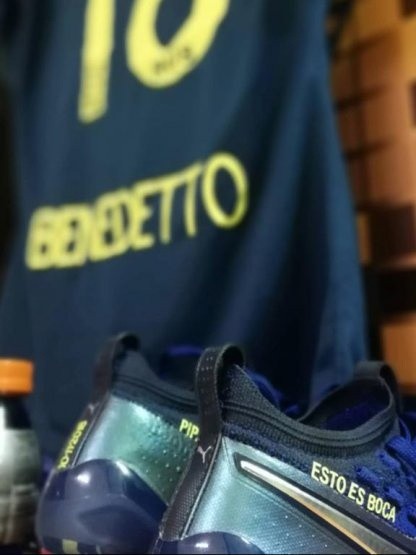 Esto no evitó que el goleador tuneara sus botines pensando en saltar al terreno de juego cuando le toque para aportarle al Xeneize todo su poder de juego.