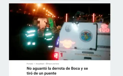 Un hombre de 38 años se arrojó de un puente en la ciudad de Termas de Río Hondo, Santiago del Estero, tras la derrota de Boca ante River por la Supercopa Argentina.