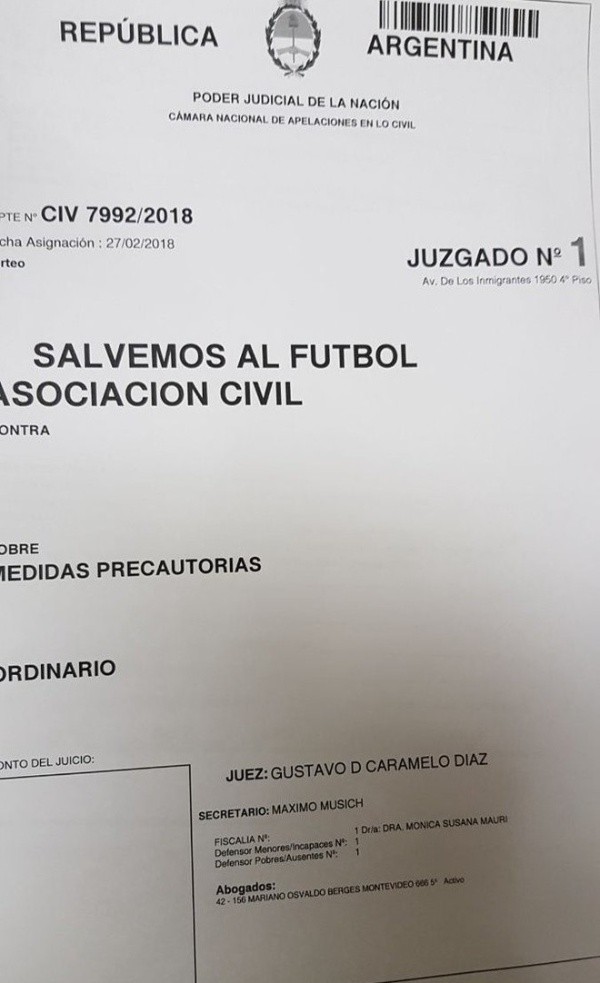 ‘Salvemos al Fútbol’ presentó este martes una ‘acción autosatisfactiva’, similar a una medida cautelar, en el JuzgadoN°1. ¿El objetivo? Que la Justicia suspenda el compromiso ya que se trata de un ‘exponencial fuente de conflicto’.
