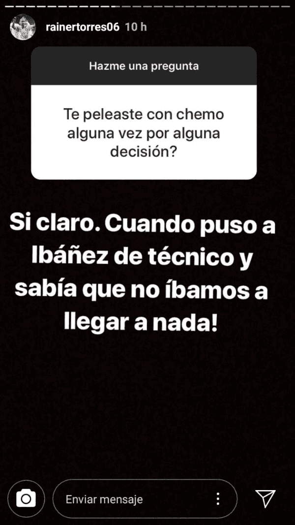Años más tarde, Torres publicó una historia en la que le comentaba a sus seguidores que podían escribirle para preguntarle lo que deseasen. Lógicamente, la consulta que muchos hinchas de Universitario tenían no tardó en llegar. “Quien te saco de la U”, preguntó un usuario.