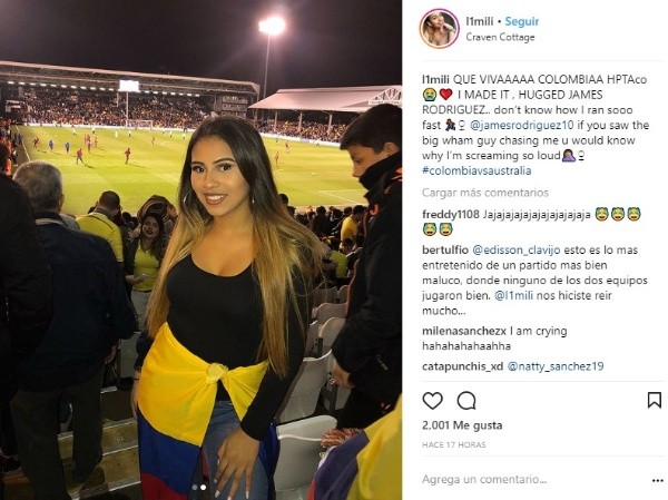 Una fanática, que en las redes lleva el nombre Laura Nicole, logró burlar a la seguridad y llegar hasta James para sacarse una foto junto a su ídolo. Cumplido el objetivo, la señorita se volvió completamente loca y lo registró todo con su teléfono móvil.