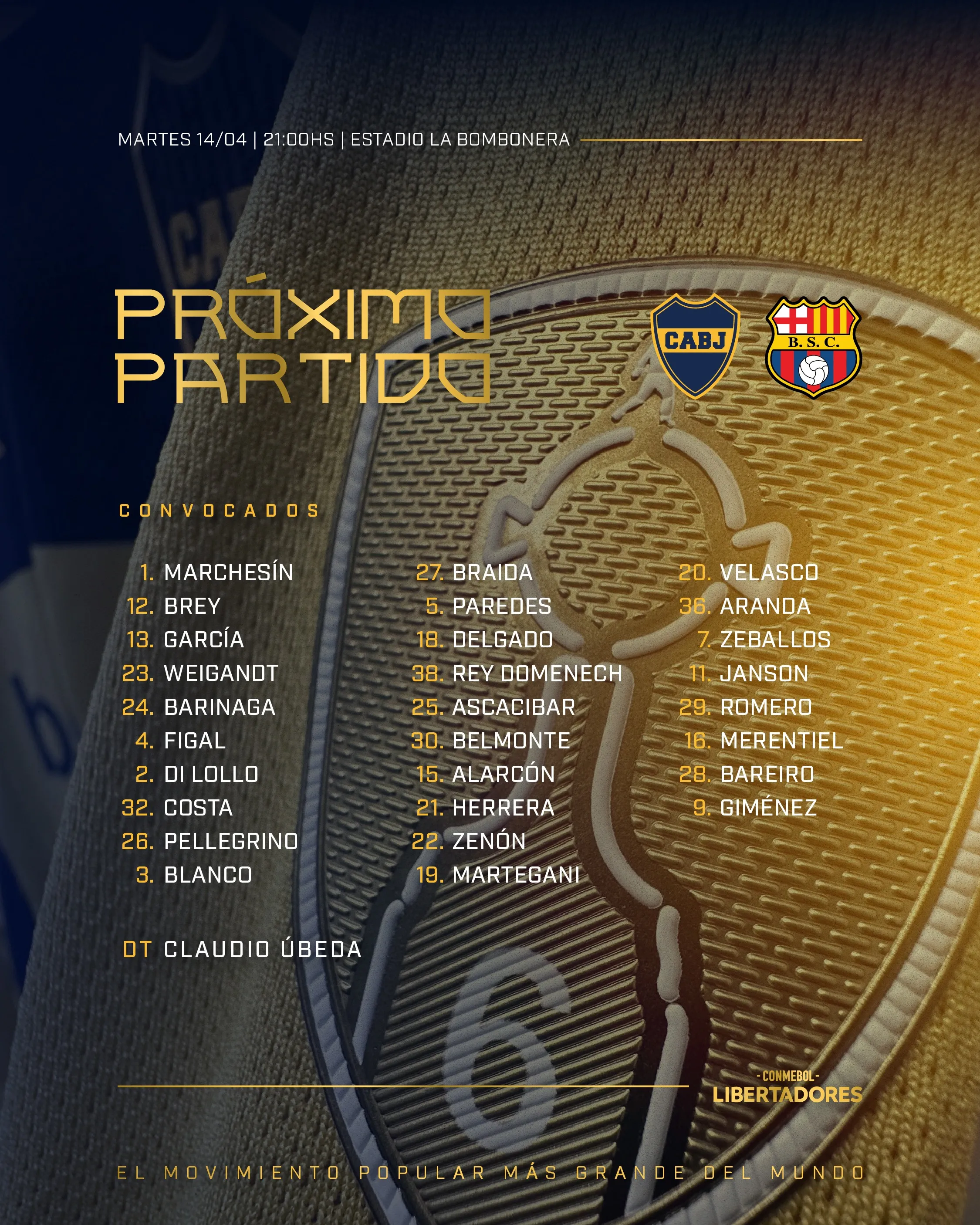 - Martes 14/4 | Boca vs Barcelona SC | 21:00 hs.