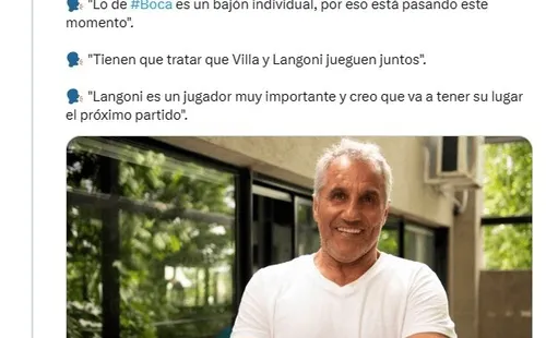 Lo mismo opina el Beto Márcico, ídolo de Boca. En diálogo conDSports Radio, el exfutbolista le pidió al DT del Xeneize la inclusión de Langoni por su gran capacidad en ofensiva.“Tienen que tratar que jueguen juntos con Villa”,soltó el correntino a modo de recomendación para mejorar el ataque.