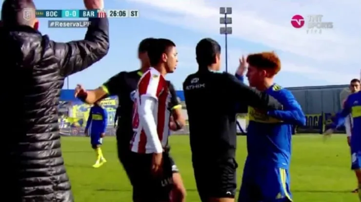 La jugada que más impacto tuvo en las redes sociales, sin embargo, fue una que protagonizóValentín Barco. Y la repercusión se dio porque terminó en un cruce entre el “Colo” y un jugador de Barracas. Ocurrió a los 26 minutos del complemento: el lateral izquierdo fue a disputar una pelota contra la línea de cal y chocó contra un futbolista rival.
