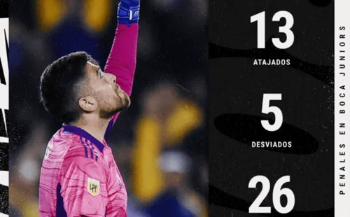 Sin embargo, sus positivas intervenciones no se limitan a su vuelta. Si contabilizamos todos sus encuentros en la institución,detuvo 13de los 44penales que le patearon en Boca. Asimismo 5fueron desviados y solo 26terminaron en gol. En otras palabras,un 41% de las ejecuciones no terminaron en un festejo rival. Una locura.