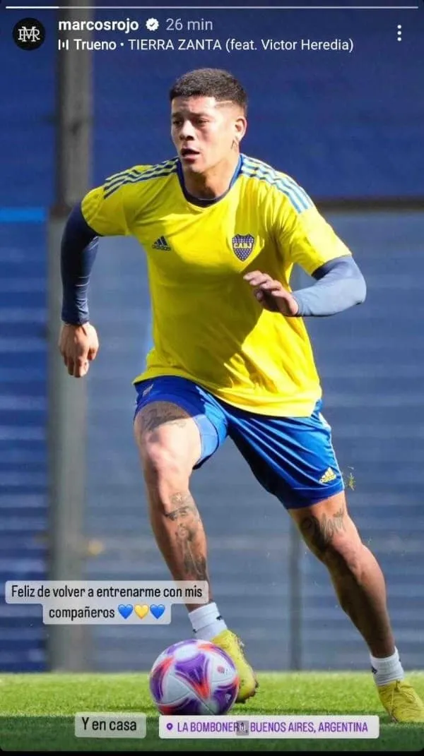 Para confirmar su decisión, y en paralelo mostrar su felicidad por estar en buenas condiciones físicas,el zaguero zurdo posteó una historia de Instagram con un mensaje bien clarito. “Feliz de volver a entrenarme con mis compañeros”, escribió junto con unos emojis azules y amarillos, en una foto suya en la práctica de este jueves, donde regresó a entrenarse con normalidad tras el desgarro.