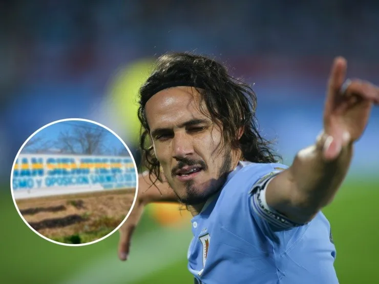 Edinson Cavani rechazó la propuesta de Boca y, en las inmediaciones del centro de entrenamiento que posee el Xeneize, apareció un pasacalle dándole fuerzas a Riquelme.