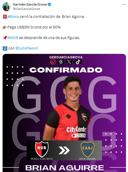 Gary Medel, que afrontará su segundo ciclo en el club, fue el primer refuerzo confirmado y luego llegó Toto Belmonte, presentado este lunes. Pero las caras nuevas no terminan allí. Germán García Grova y Julio Pavoni adelantaron que Brian Aguirre será el tercer fichaje de Boca en este mercado.