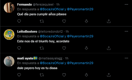 En los comentarios, todos los fanáticos le desearon lo mejor, pero sobre todo, pidieron que hoy sea su estreno goleador con la camiseta xeneize, ni más ni menos que en un Superclásico. “Hoy mojás”, “Hoy la descosés” fueron mensajes que se repitieron, los que se sumaron a otros que le pedían que le pegue de lejos, destacando su gran remate de larga distancia. De darse un gol y una victoria, no quedarán dudas que el cumpleaños será más que especial para Payero. ¿Se le dará su primer gol en Boca en un Superclásico?