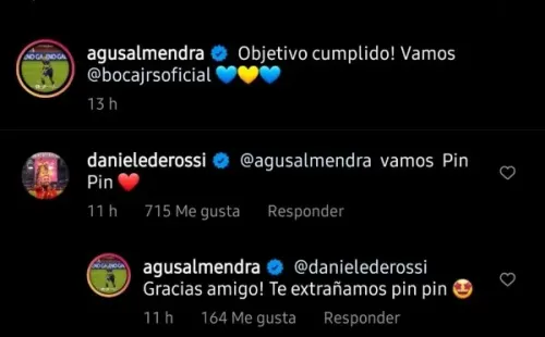 De igual manera, lo que más llamó la atención de los hinchas fue uno de los comentarios que aparecieron al poco tiempo: Daniele De Rossi, que tuvo su pequeña aventura por el fútbol argentino siendo parte del plantel de los de La Ribera y sumando varios minutos en duelos profesionales, no se olvida de sus excompañeros y le tiró unas palabras con mucho cariño.