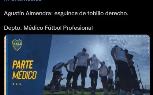 Boca publicó un parte médico oficial en el que informó que el volante tiene un “esguince de tobillo derecho”. Luego de los estudios se sabrá la gravedad de la lesión de Almendra.