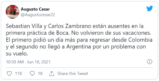 Con casi todo el plantel a disposición, hubo dos futbolistas de muchísima continuidad a lo largo del último año que, por diferentes motivos, no se hicieron presentes en el Centro de Entrenamiento de Ezeiza. ¿De quiénes se trata? De Carlos Zambrano y Sebastián Villa.