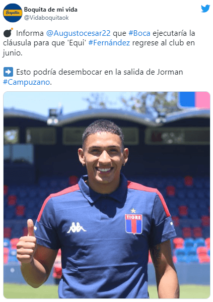 Otro de los detonantes para el regreso de Equi sería la inminente venta de Jorman Campuzano, según comentó Martín Costa en adición a lo que señaló Augusto César en ESPN F12. Ante la falta de volantes centrales, la vuelta del actual jugador de Tigre podría ser una realidad a partir del próximo semestre.
