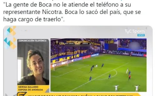 Por este motivo, su parejas salió a hablar en vivo por TyC Sports, en el programa Súper Fútbol, y no se guardó nada: “La gente de Boca no le atiende el teléfono a Nicotra (representante del jugador), él había hablado con Raúl Cascini. Sería una locura que haga la cuarentena allá”, expresó sobre la chance de que se quede 14 días fuera de Argentina.