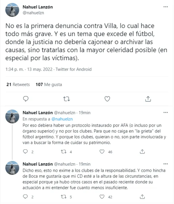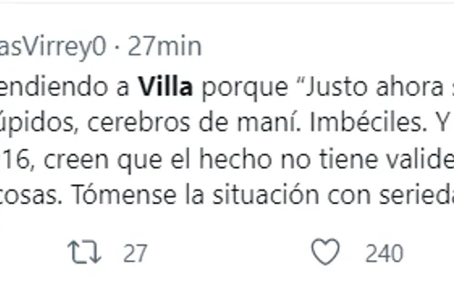 Las redes sociales son una selva. Cada cual en su perfil es libre de poner lo que quiera y por eso en medio de la revolución en Boca por unanueva denuncia por violencia de género contra Sebastián Villa ¡hasta hay defensores del delantero que lo piden de titular vs. Racing! La Comisión Directiva analiza un posible castigo para el futbolista, pero mientras tanto los hinchas opinan.
