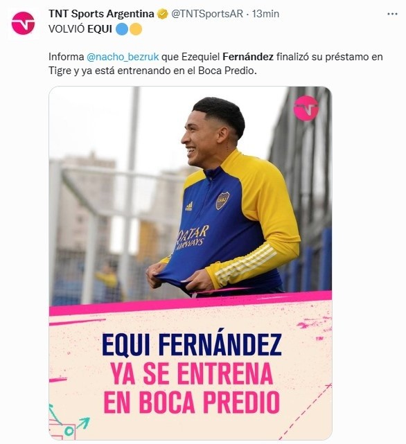 Equi se había marchado de la institución por falta de lugar en la nómina profesional, ya que Alan Varela se fue adueñando del puesto y Jorman Campuzano era el primer recambio en la posición de volante central. Ahora, con su gran desarrollo en el Matador y alta probabilidad de sumar minutos en este 2023, Fernández fue recibido de forma grata por los fanáticos del Xeneize y todos se ilusionan con verlo brillar en La Bombonera.
