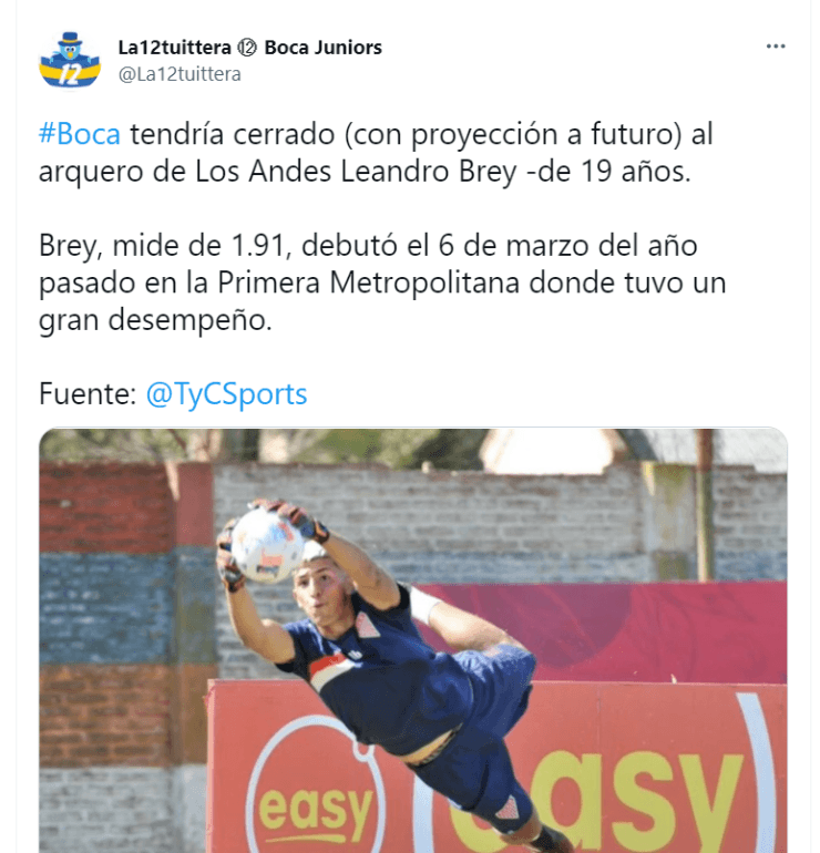 Fue una sorpresa total: “Boca se quedó con Leandro Brey, el arquero de Los Andes”, titularon varios sitios de internet. Con los ojos puestos en el 9, Pol Fernández, Ángel Romero y compañía, “el Xeneize se adelantó y posó los ojos en un el 1 del Milrayitas, de un futuro tremendo”, decían. Aunque Los Andes rápidamente emitió un comunicado.
