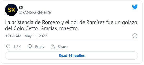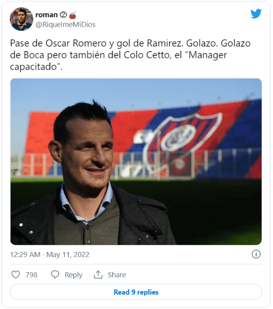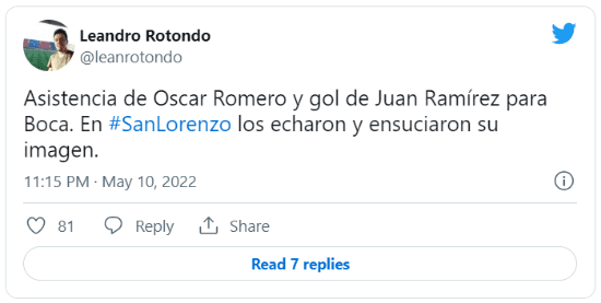 “Pase de Oscar Romero y gol de Ramirez. Golazo. Golazo de Boca pero también del Colo Cetto, el manager capacitado”, escribió un usuario, con palito para quien hace unas semanas dio un paso al costado en el club azulgrana. La bronca llegó hasta Boedo, donde también hubo enojo: “En San Lorenzo los echaron y ensuciaron su imagen“, reprochó un hincha.