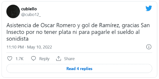 Ni el fixture cruzó los caminos de estos dos equipos en la Copa de la Liga, pero todas las menciones llegaron después del gol de Juan Ramírez. La combinación entre el autor del segundo gol y Óscar Romero, su asistidor, provocó que llovieran varios agradecimientos irónicos para el Ciclón.