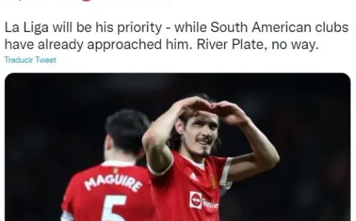 ¿Dónde quiere jugar Cavani? “La Liga será su prioridad”, afirmó Romano, pero también mencionó que “los clubes sudamericanos ya se han acercado a él”. Sin embargo, descartó al Millonario: “River Plate, de ninguna manera”. ¿Boca sigue con chances?