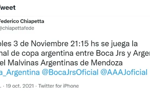 A pesar de que, por el momento, desde la organización del certamen y la AFA no indicaron información al respecto, todo fue confirmado por Federico Chiapetta, el Subsecretario de Deportes de Mendoza.
