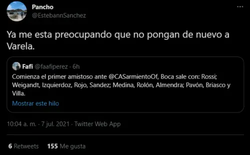 Esto enfureció ydejó en duda a los hinchas de Boca, quienes no entienden la decisión táctica de sacar a Varela, cuando estaba siendo un juvenil más que preciado en el club, por eso lo pidieron en las redes sociales para que esté presente en la Copa Libertadores la próxima semana.