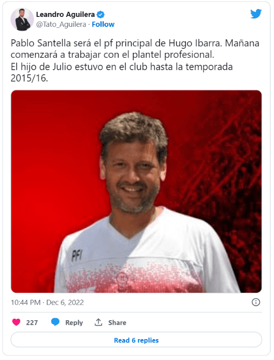 El hijo de Julio Santella -histórico profe del cuerpo técnico de Carlos Bianchi- será el nuevo integrante del cuerpo técnico de Primera División. Su último paso por el club había sido en la temporada 2015/16, cuando formaba parte del equipo de Rodolfo Arruabarrena.