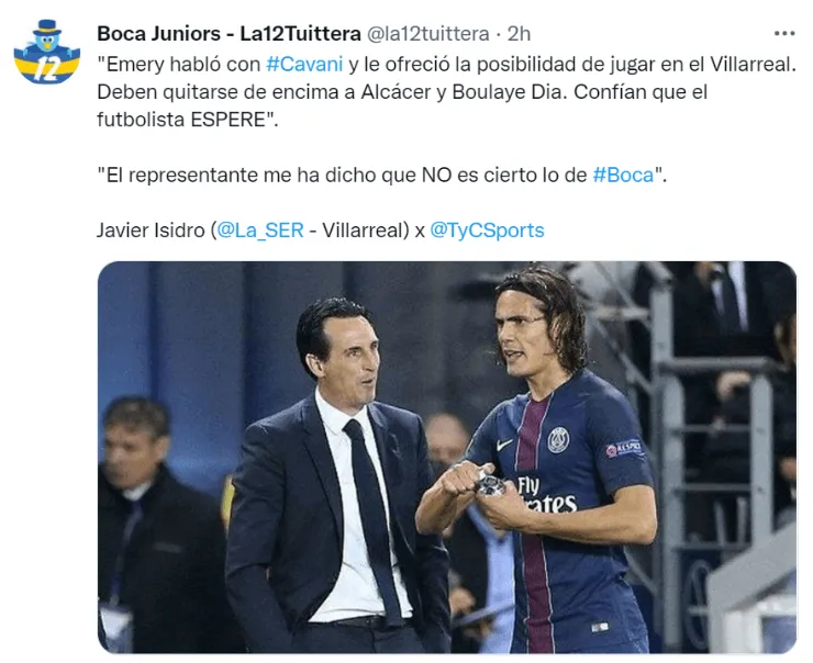 En las últimas horas, desde España revelaron que Unai Emeryestá presionando al Matador para que se ponga la camiseta del Submarino Amarillo y que“habló con ély le ofreció la posibilidad de jugar en el Villarreal”. Sin embargo, el periodista de Cadena SER, Javier Isidro, afirmó en TyC Sports que los españoles “deben quitarse de encima a Paco Alcácer y Boulaye Dia. Confían que el futbolista espere”.