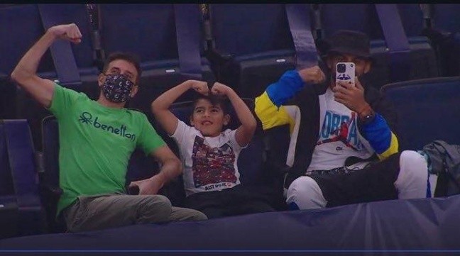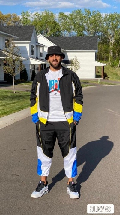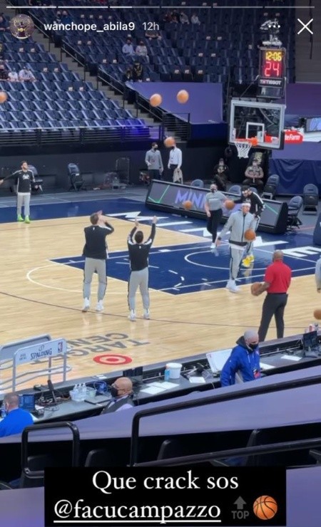 “¡Qué crack que sos, Facu Campazzo!”, escribió el delantero en su historia de Instagram en la entrada en calor. Minutos más tarde, con el duelo en marcha, la transmisión enfocó al ex-Boca que estaba acompañado por su hijo. En ese momento fue cuando todos se hicieron eco del outfit que eligió para la ocasión.