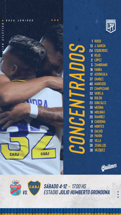 Con la final ante Talleres a la vuelta de la esquina, Boca buscará cumplir su objetivo este sábado en Sarandí. El equipo de Sebastián Battaglia luchará por un triunfo para llegar a la cita de Copa Argentina con la clasificación a la Libertadores asegurada. Una victoria ante Arsenal asegura el repechaje.