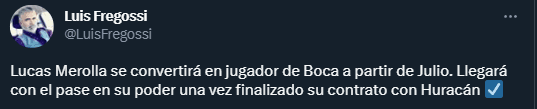 Respecto al refuerzo que habría cerrado Boca, el periodista Luis Fregossi sentenció en su cuenta de Twitter que desde el 1 de julio se sumará al Xeneize como agente libre el defensor Lucas Merolla, el zaguero zurdo de Huracán por el que tanto se intentó en el mercado de pases anterior.