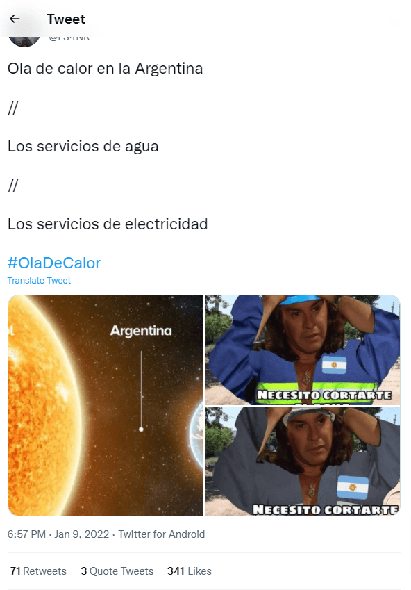Argentina tiene una de sus semanas más difíciles en lo que respecta al clima debido a sus altas temperaturas. Un masivo corte de luz causó queusuarios de la zona norte y sur del área metropolitana de Buenos Aires (AMBA).