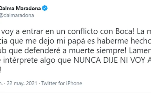 Horas más tarde, la hija de Pelusaaclaró sus declaraciones en su cuenta de Twitter y dio a entender que todo fue malinterpretado: “¡Jamás voy a entrar en un conflicto con Boca! La mejor herencia que me dejo mi papá es haberme hecho de ese club que defenderé a muerte siempre. Lamento que se intérprete algo que NUNCA DIJE NI VOY A DECIR”.