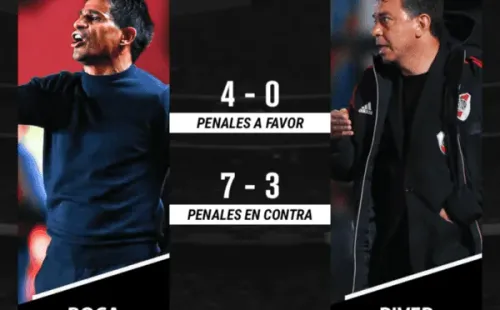 Si nos limitamos a la materia de los penales, también se percibe otra disparidad. Aunque a Boca le cobraron 4 -y ninguno a River-, la diferencia es los pitados a sus respectivos rivales también es visible. Fueron 7 penales en contra del Xeneize (2º conjunto con más sufridos en el torneo) y 3 al Millonario. La defensa de River, en este caso, otorgó más seguridad. Más si lo complementamos que acumularon 8 vallas invictas, exactamente el doble que el conjunto de Ibarra.