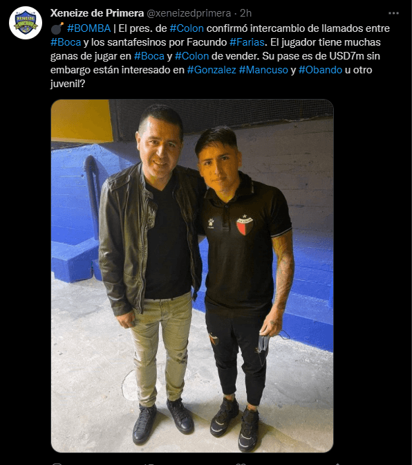 Este jugador es ni más ni menos que Facundo Farías, el joven crack de Colón que es una de las sensaciones del campeonato y del equipo campeón de la Copa de la Liga pasada. Según se confirmó el propio Presidente del Sabalero, él tuvo comunicación con Riquelme, quien le hizo saber del interés de Boca por Farías.