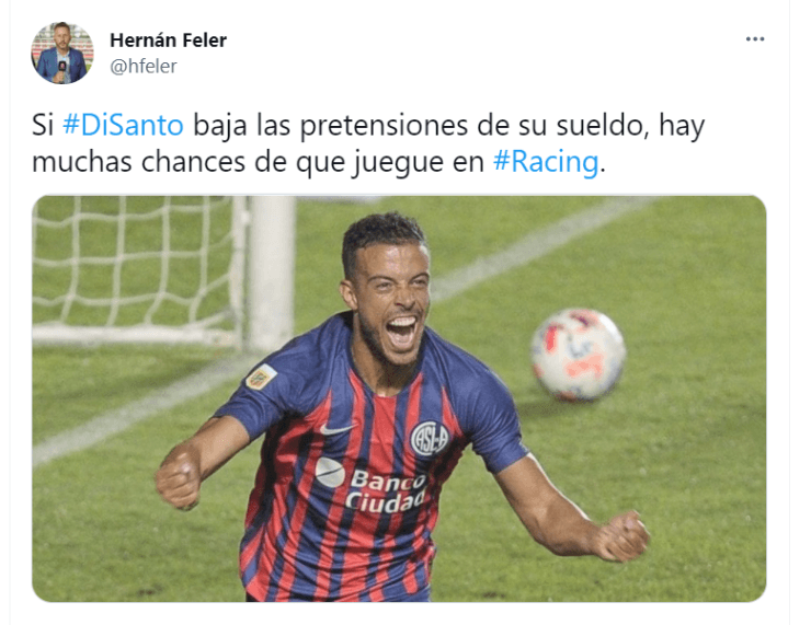Según Hernán Feler, periodista de TNT Sports, “hay muchas chance de que Di Santo juegue en Racing”, aunque avisa que para que el pase se dé el delantero tendrá que dejar de lado parte de su sueldo. Allí apunta Boca, que lo tiene como plan b de Darío Benedetto y, si se cae la chance del Pipa, lo tentará desde lo económico.