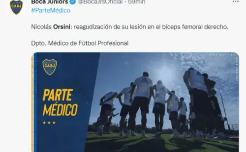 Boca dio a conocerel parte médico del atacante en sus redes sociales mediante un comunicado oficial. “Nicolás Orsini: reagudización de su lesión en el bíceps femoral derecho”, señaló el club. El exdelantero del Granate jugó apenas 12 partidos con la camiseta azul y oro, y su único gol fue ante Colón para darle el triunfo a su equipo por 1-0.