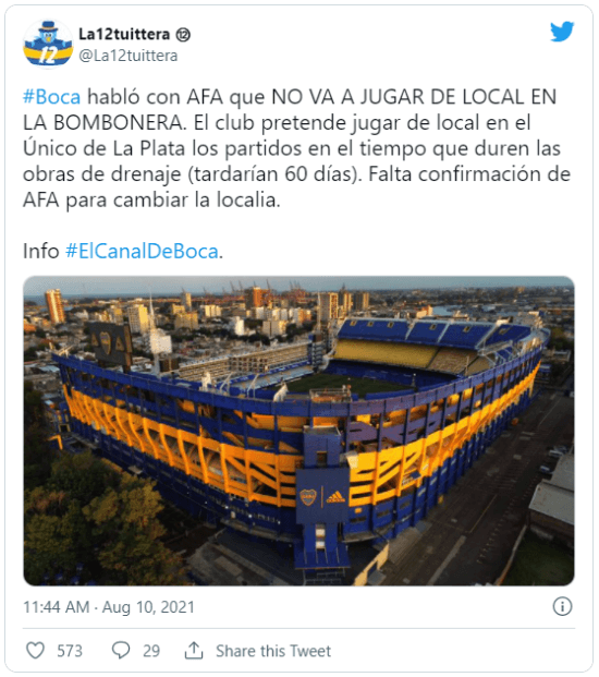 Puertas adentro no quedaron a gusto con lo sucedido en el Estadio Alberto J. Armando, teniendo en cuenta que hace poco más de un mes se había hecho un trabajo con el drenaje. Finalmente, la dirigencia del club de la Ribera estaría analizando tomar una decisión.