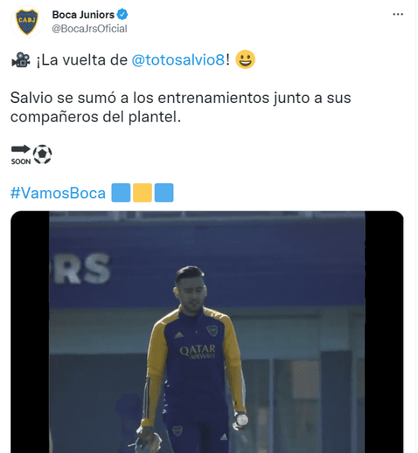 Hace unos días,Bocacomunicó una de las noticias más alegres del semestre: después de 6 meses de inactividad, Eduardo Salvio ya se entrena a la par de sus compañeros y está a disposición de Sebastián Battaglia para empezar a recuperar terreno en el equipo. Mientras tanto, Toto se quedó en Buenos Aires mientras el Xeneize prepara el duelo ante Patronato por la Copa Argentina.