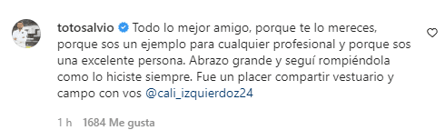 “Todo lo mejor amigo, porque te lo mereces, porque sos un ejemplo para cualquier profesional y porque sos una excelente persona. Abrazo grande y seguí rompiéndola como lo hiciste siempre. Fue un placer compartir vestuario y campo con vos”, le escribió Toto a su excompañero. El actual delantero de Pumas también se había expresado públicamente a favor de Izquierdoz, en un reciente intercambio con el zaguero en redes sociales a raíz del debut de Salvio en México. Una amistad que trasciende la camiseta.