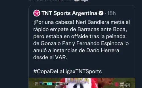 Sin embargo, lejos de haber estado de acuerdo con la decisión del arbitraje, el propio Neri Bandiera fue quien se descargó en sus redes sociales para manifestar su descontento por la resolución de la jugada. “Finito que es pal gato. El 22 nunca la toca y el tirado de líneas es desde la peinada”, señaló el volante del Guapo en su cuenta de Twitter.