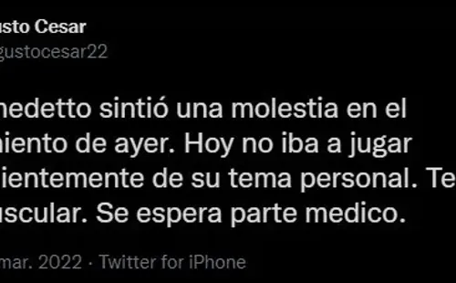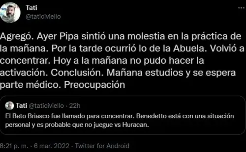 Aparte de esa situacion, empezó a circular el rumor de una posible lesión del delantero del Xeneize. Con el correr de las horas fue apareciendo información y a la noche varios periodistas que siguen la actualidad del equipo fueron contando más detalles. Ahora apareció un dato que nadie sabía sobre la situación de Benedetto.