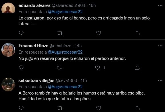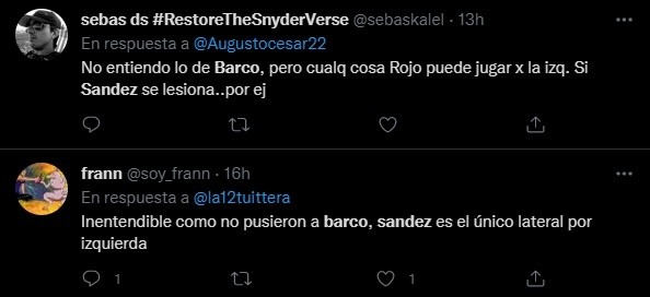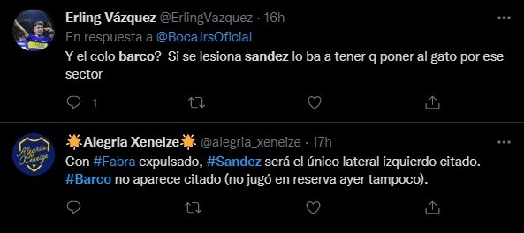Los comentarios sobre el tema se dividieron en las redes. Un hincha mencionó que “es arriesgado” y otros le restaron importancia. Lo cierto es que Boca saldrá a la cancha sin una variante natural para el puesto de lateral izquierdo. Por su parte, Sández será titular después de mucho tiempo: su último encuentro desde el arranque fue el 11 de diciembre ante Central Córdoba de Santiago del Estero.