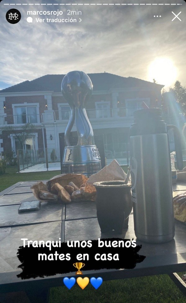 En la foto se puede observar el patio de su domicilio, donde además del mate, un teléfono, el termo y facturas, se puede visualizar el trofeo que alcanzó la institución boquense. Claramente, Rojo no dejó que Advíncula se quedara con la Copa Argentina e indirectamente lo chicaneó.
